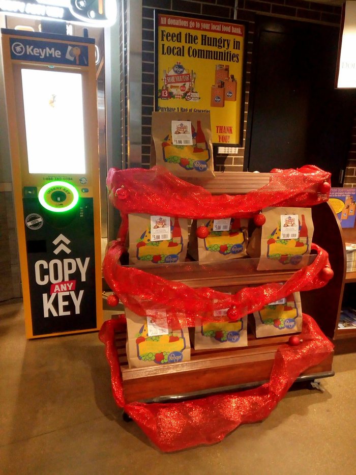 Всем привет, буду местными ругательными словами типа фандрайзинг, састейнабилити и другими выражаться. По-человечески "фандрайзинг" - сбор денежки, обычно на благотворительные цели, sustainability - "положь где было", т.е. попытка того самого "устойчивого развития", при котором получаешь все радости современного консьюмеризма (перевожу, потреб**ства), и одновременно стараешься ну не всё вокруг загадить. Ну и говоря о благотворительном сборе средств, упомяну местную идиому "less fortunate people" - это о тех, кому, как бы помощь бы не помешала. Пора картинку вставлять! Итак, всё, о чём пост, находится на входе в местный продуктовый.