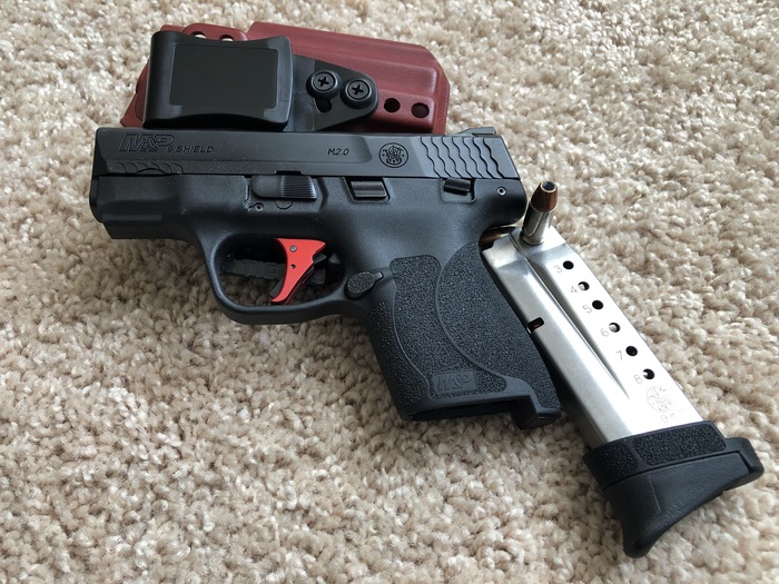Однорядный магазин. Рама из полимера. Два магазина в комплекте (на 7 и 8 патронов). Ударно-спусковой механизм ударникового типа, с постоянно довзведенным ударником. Односторонний флажковый предохранитель (есть модели без него). Усилие заводского спускового крючка ~3кг. Стоковый спусковой крючок заменён на некий Apex Action Enhancement Trigger c облегчённым спуском (~2–2,5кг), более коротким ходом и с предохранителем спускового крючка. К расширенному магазину на 8 патронов был также добавлен удлинитель рукоятки от Pearce Grips.