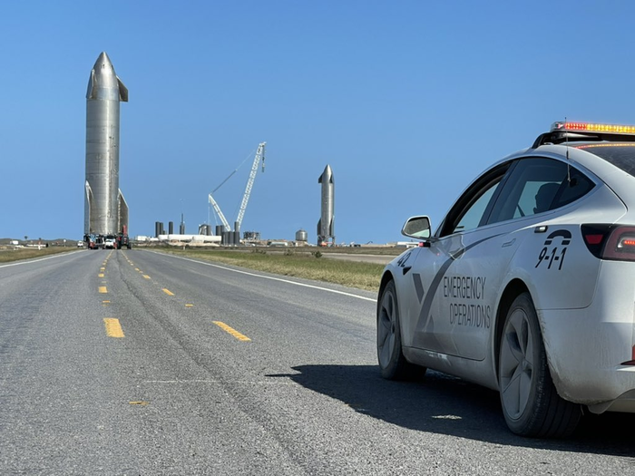 Спустя всего 2 месяца, после первого полета SN8, на пусковой площадке впервые оказывается сразу два новых полноразмерных прототипа второй ступени Starship, с расположившимся по соседству тестовым баком, ожидающим своего испытания на разрыв.