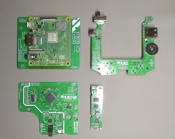Потом вторая, третья, четвертая. Вот все части и собраны. Геймпад на Atmega, плата питания, состоящая из двух частей - это зарядника батареи и преобразователя до 5,24В и током работы 4А (пик 6) может работать в связке с Raspberry PI 4