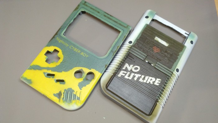 UV Печать на корпус. Обычно я такое не делаю, но в твиторе был пост про геймбой киберпанка, пользователь показал, как бы вы выглядел геймбой во вселенной киберпанк в 3D редакторе, я решил, почему бы и нет, пусть будет и настоящий.