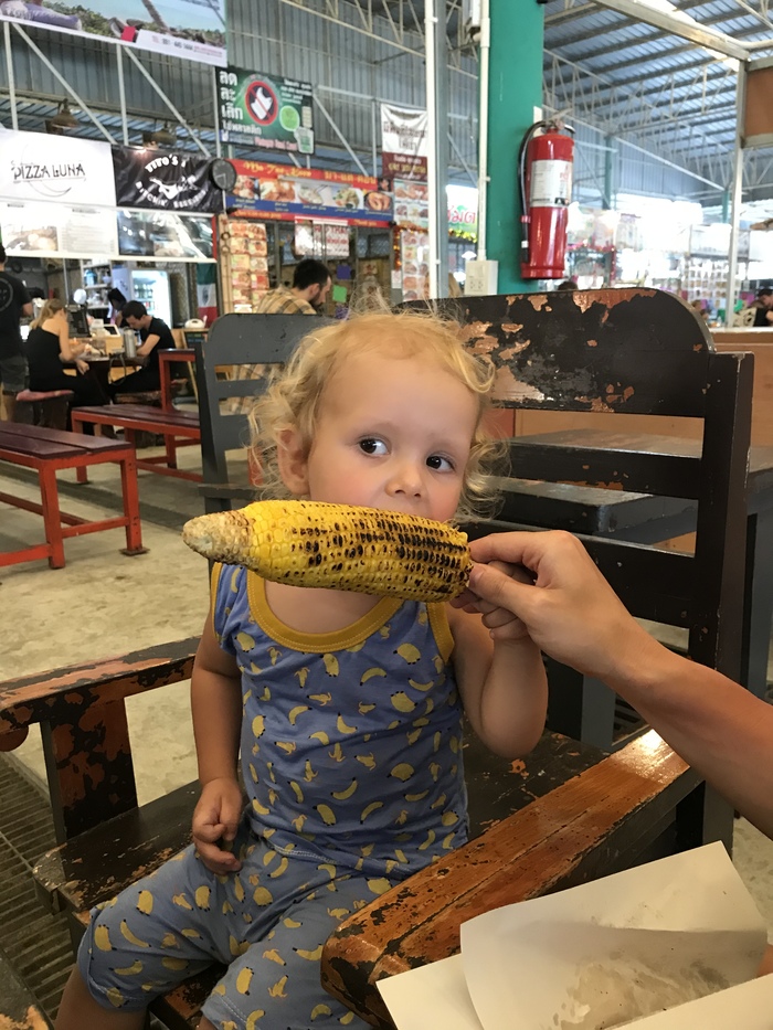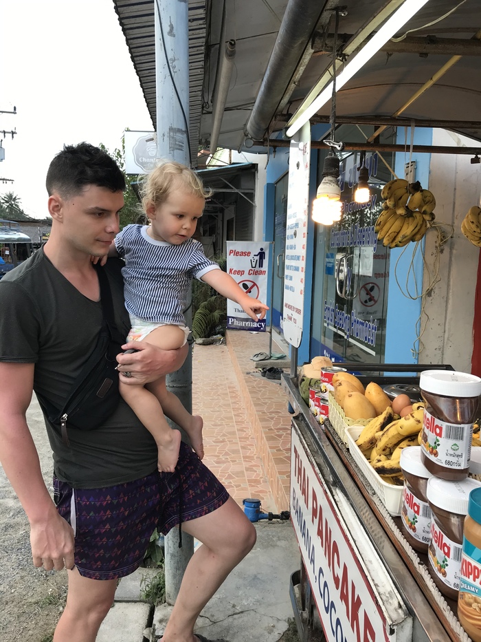 В Тайланде все прекрасно с этим вопросом и Панган не исключение. Мы не испытывали проблем с питанием даже в прошлом году, когда нашему сыну был год и он еще не перешёл на общий стол (правда тогда мы постоянно пользовались блендером). В любом сетевом магазине 7/11 или Family Mart можно купить вареные яйца, бананы, готовые охлаждённые бутерброды и замороженные блюда, сосиски, выпечку, йогурт и др. Кстати, бутерброды и подобное вам предложат разогреть прямо на месте.)