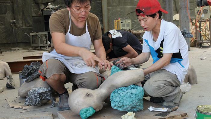 Техника работ А Сяня заключается в создании портретных гипсовых слепков с натуры, их которых потом делаются формы для отливки из различных материалов - фарфора, фибергласса или бетона. Как любой художник А Сянь не просто отливает слепок, но и общается с натурщиками, узнавая об их внутреннем мире, мыслях и чувствах, поэтому каждая его фиигура - живая