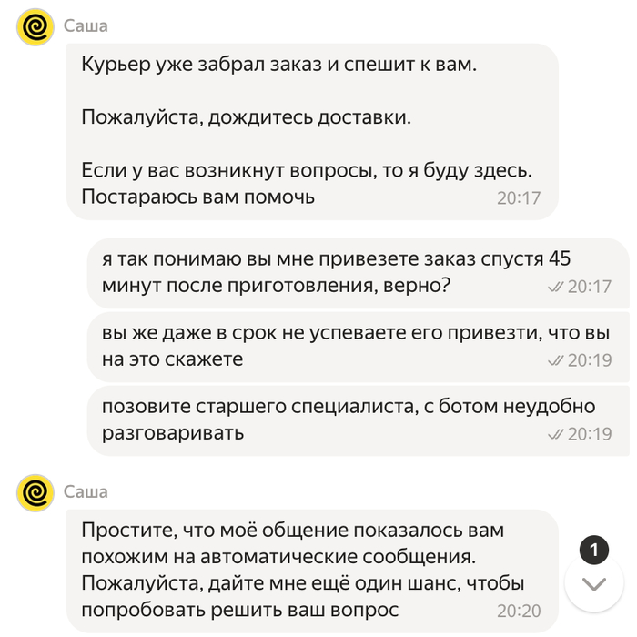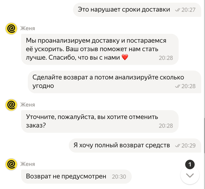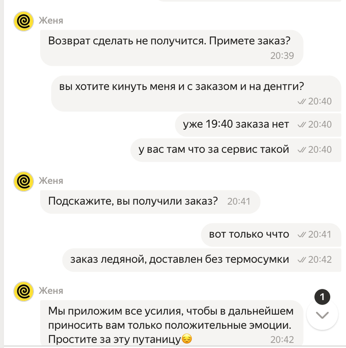 Ну а техподдержка как обычно морозится. @Yandex.eda, Мы вам привезем холодное говно с опозданием, и денег вам не вернем, еще и двойной чизбургер не положили, заточили наверное пока курьера ждали. В общем заказ в мусоропровод. Впредь у вас не заказываю, это уже не первый случай.