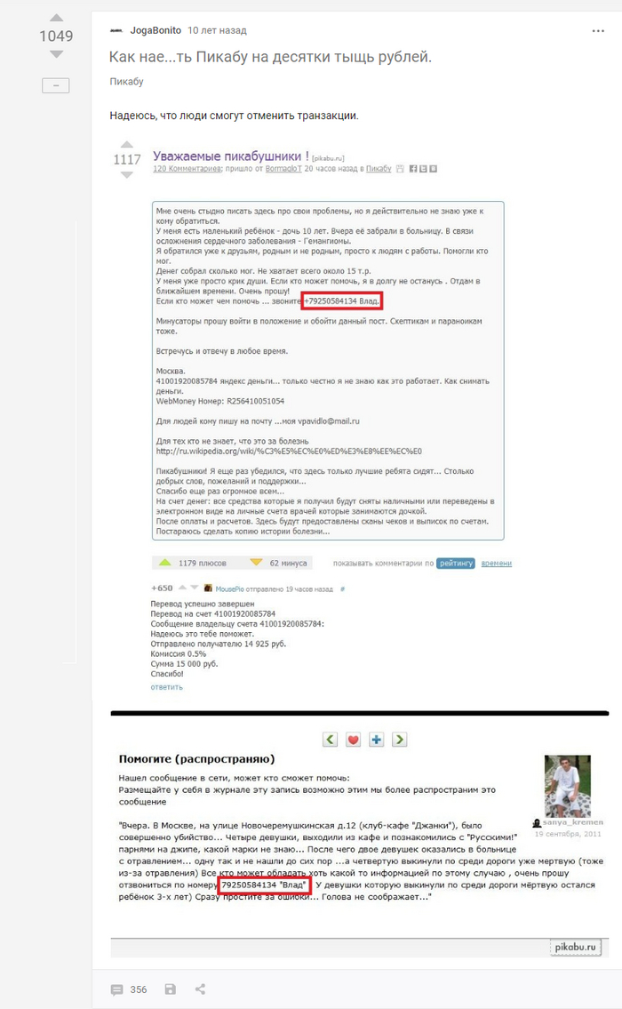 Вот такая история развода из 2012. Люди были добрее и наивнее, как мне кажется. Любопытно, что второй пост тоже был у автора.