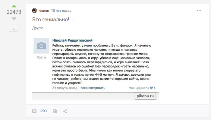 Глядя на подобные посты, я вспоминаю комментарий из прошлого выпуска о том, как скучно мы тогда жили.