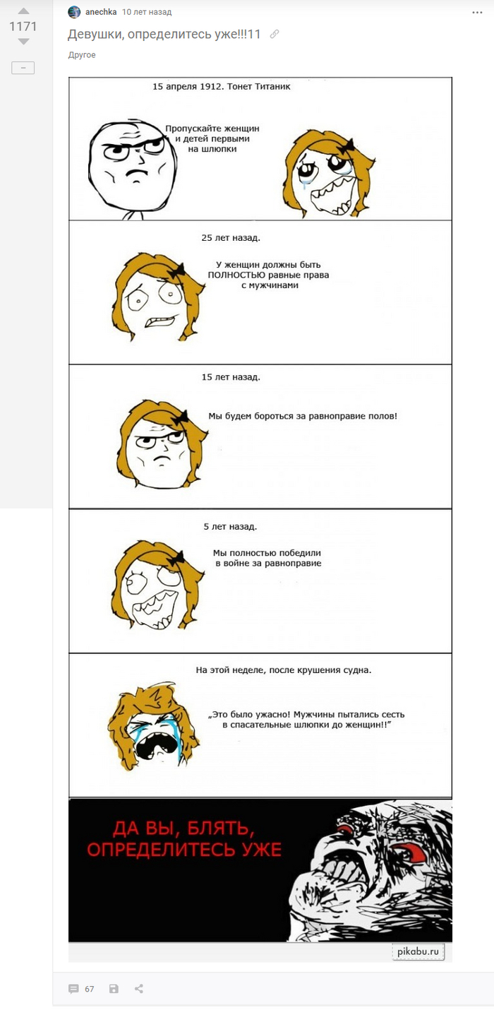 Сразу два поста подряд(и ещё один). Сами посты не особо интересны, но наталкивают на мысль, что, не хочу ни на что намекать, на Пикабу тогда не особо любили женщин. Было бы интересно посмотреть гендерную статистику Пикабу за 2011 год.