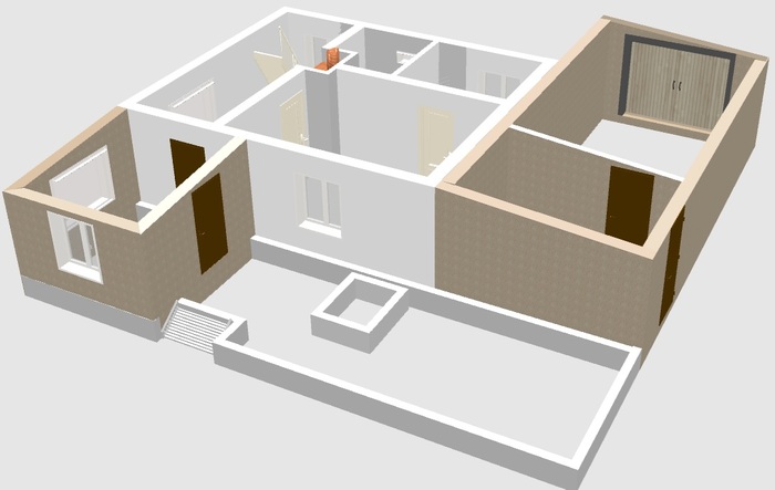 В целях экономии места на тропинке -отмостке вокруг веранды (колодец) на плане сделал "внутреннюю" лестницу, что усложняет немного заливку цоколя веранды и съедает полезное место самой веранды, однако является практичным решением во время непогоды и отсутствия необходимости в козырьке. Попробуйте отговорить в пользу "внешней" (примыкающей).