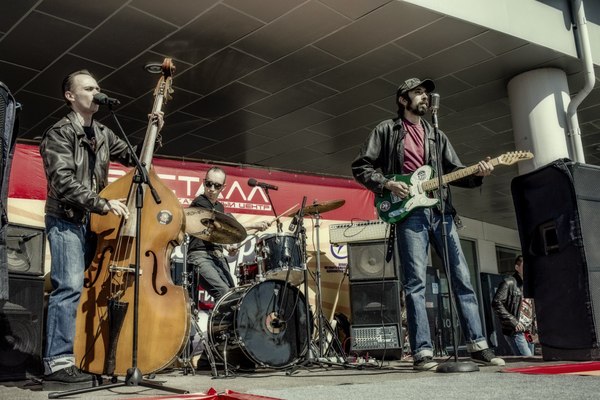 Финиш - место, где соберутся все участники, сочувствующие, зрители и все такое. Мы всегда проводим на финише концерт из нескольких "соответствующих духу эпохи" коллективов. Зрители смотрят машинки, участники делятся впечатлениями, а мы в это время страдаем - ведем подсчеты результатов, выслушиваем от полиции, разруливаем проблемы... В общем, весело!