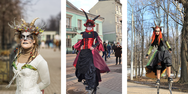 Могу сразу предупредить, что идея сначала загримировать человека и потом одевать на него ооочень узкую юбку, окажется огромной ошибкой. Возможно даже фатальной. Пробегать около 12 часов в хорошо утянутом корсете, то еще удовольствие, хотя первые пару часов еще норм и кажется что ты великая стройняшка и переживешь все и всех на свете. Ехать в такси с огромными рогами и сложной прической, на грани фола. Хотя и весело всем остальным кроме тебя )))