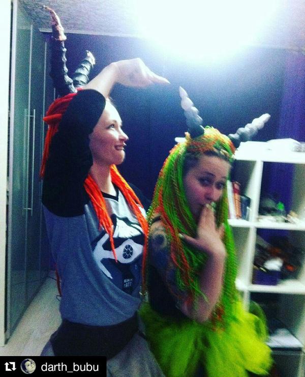 На меня повесили сборку рогов на всех троих, и грим, благо опыт уже был.