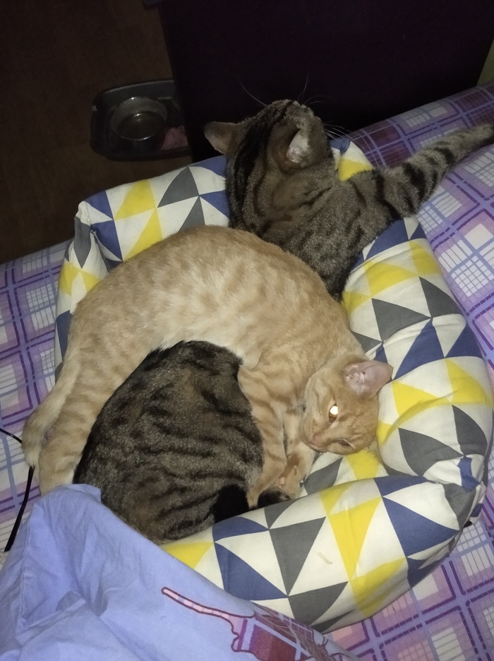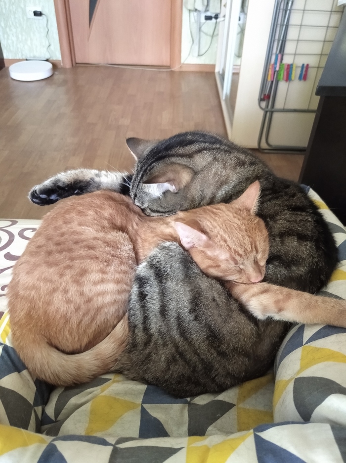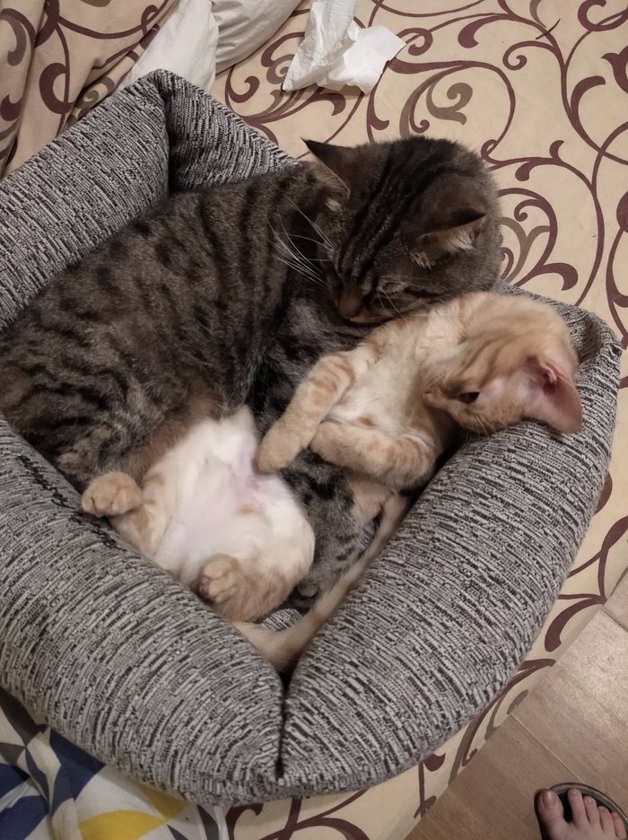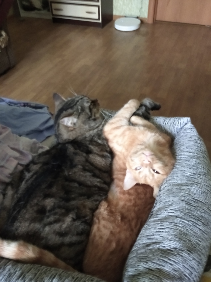 С одной стороны, мы хотели, чтоб кот не скучал, пока нас нет дома, и с этой целью взяли мелкую. С другой, иногда, глядя на уставшую морду кота, мне кажется, что он бы согласился вернуть ту скуку)