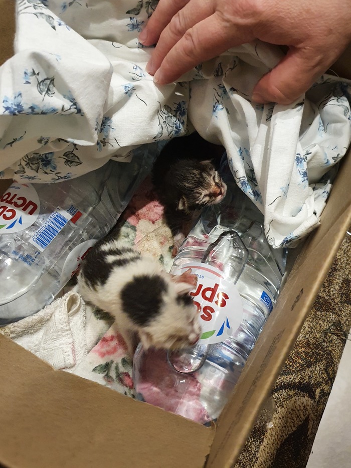 Нужна любая помощь, советы, опыта выхаживания нет! Кормим детской смесью, сидят в коробке с грелкой в ванной комнате, после еды делаем массаж. Белый ест плохо и не ходит в туалет. Боюсь, что в ванную зайдёт годовалый ребёнок. Разрываюсь между ним и котятами, боюсь не справиться.