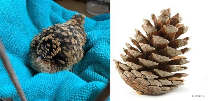 Две шишки. Хм. Я думал, что залил сюда фотографию птенца...