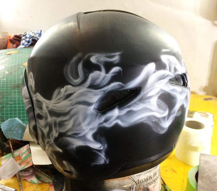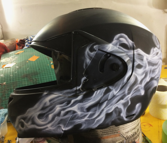 Мотошлем. Аэрография. Всполохи на черном)(немного процесса)