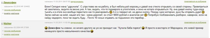 Надо сразу отметить, что мы особенно не старались скрываться и количество совпадений жизненных ситуаций у Дениса и Демосфена местами просто зашкаливало. Демосфен умудрился выбирать из одинаковых машин. (Вы вообще знаете такую машину Тойота Бревис? Сколько их видели вживую? :)), у него были в прошлом те же машины, он покупает мерседес такой же комплектации и того же цвета.