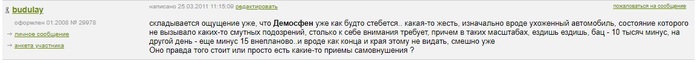 Мы с Игорем были так же активными участниками этого форума, поэтому было бы сильно подозрительно, если бы мы прошли мимо этой ветки форума, которая стала трендовой. Нам пришлось в ней тоже отметиться под своими настоящими аккаунтами, в т.ч. общаться и с Демосфеном. Если честно, это было местами весьма непросто, писать сообщения и отвечать самим же на них, чтобы не выдать себя схожей стилистикой и выражениями.