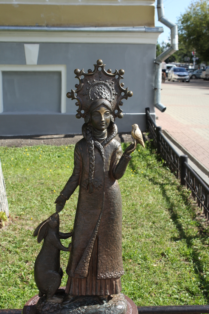 Хочется отметить, что везде стоят маленькие железные памятники в виде собак, кошек, которые являются вроде ящика для сбора помощи бездомным животным. Также очень красивая статуя снегурочки.