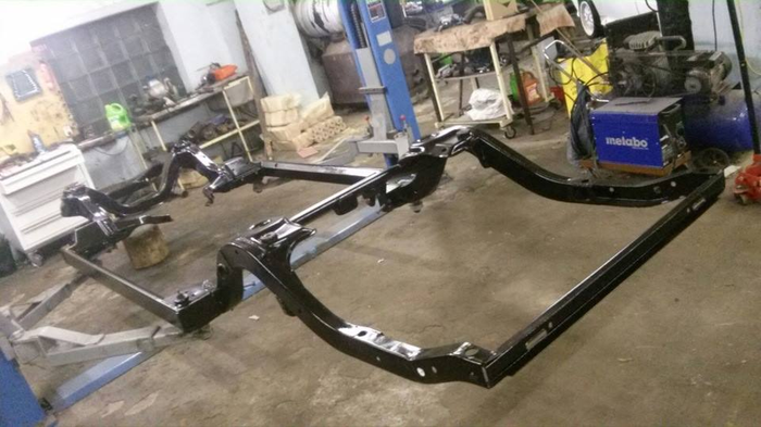 Когда уже своими силами вытянули раму, узлы креплений, стойки и сварили всё воедино, машина отправилась в на покраску: