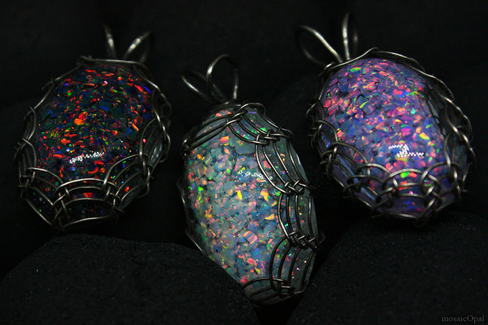 Кулоны - лабораторные опалы в стекле. На удивление, такие опалы - довольно дорогая штука.