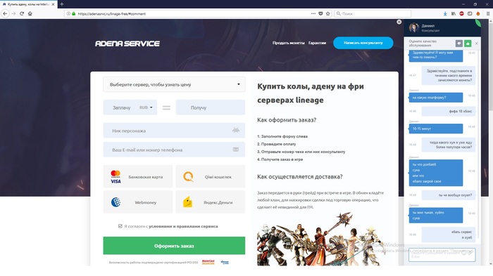 Процесс происходит так: выбираешь количество внутриигровых монет, тебе суперкомпьютер высчитывает это сначала в рублях, но можно поменять хоть на республиканские кредиты (да, они там ходят). Затем жаждущий халявы дурачек (я) отправляет деньги любым, из указанных на скриншоте, способом оплаты и ему открывается окно с отзывами и диалог с консультантом Даниилом. Для замыливания глаз он мне задал несколько вопросов и испарился.