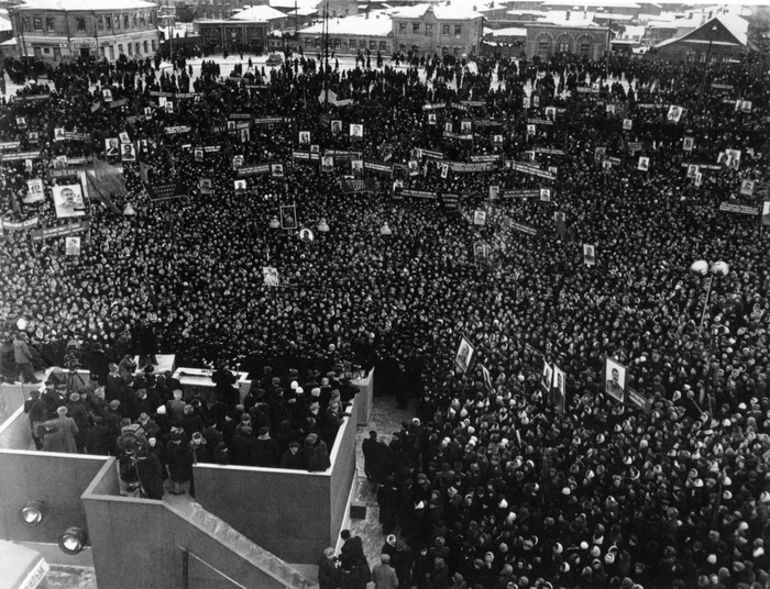 Три дня подряд живая многокилометровая человеческая река, извиваясь по улицам Москвы, направлялась к Пушкинской улице (теперь Большая Дмитровка) и по ней к Колонному залу Дома Союзов. Там на возвышении, весь в цветах был установлен гроб с телом покойного. Среди желавших проститься с «вождем» было много приезжих, но первыми через специальный вход пропускали, естественно, иностранные делегации.