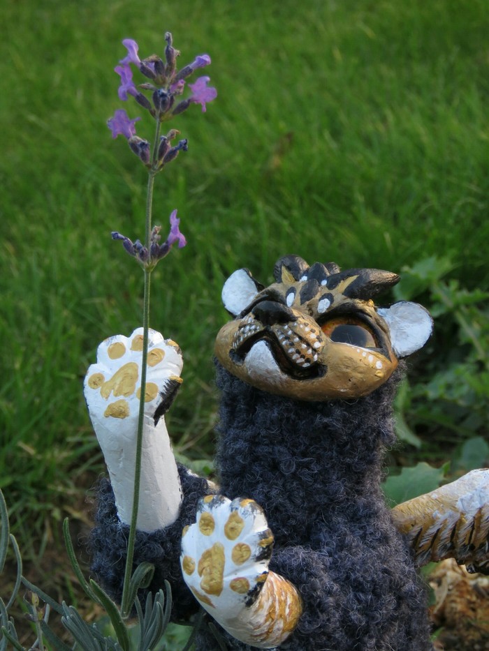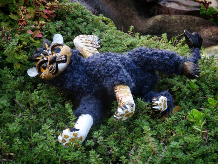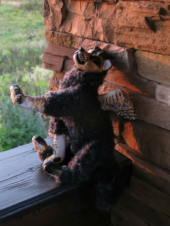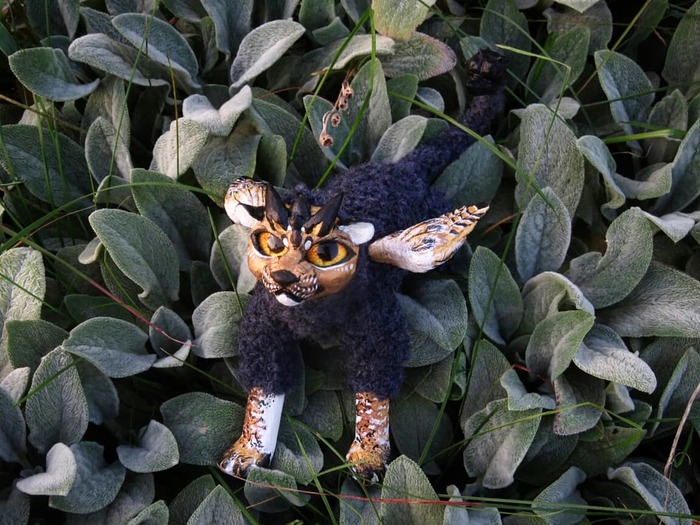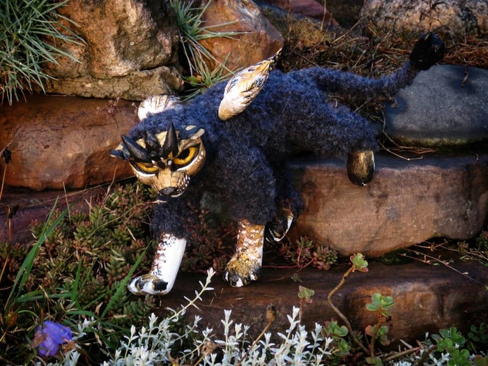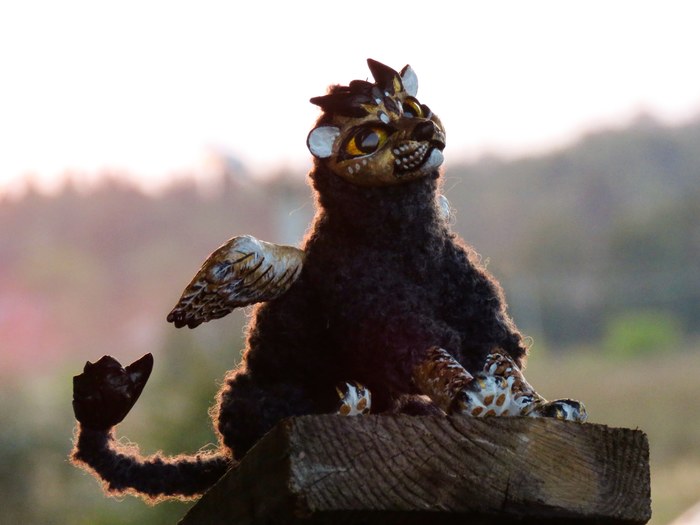 А это мантикора по имени Демиан, все детали созданы вручную (кроме глаз). Материалы - глина, глаза стеклянные, проволока, моток пряжи, акрил. На создание ушло 4 дня.