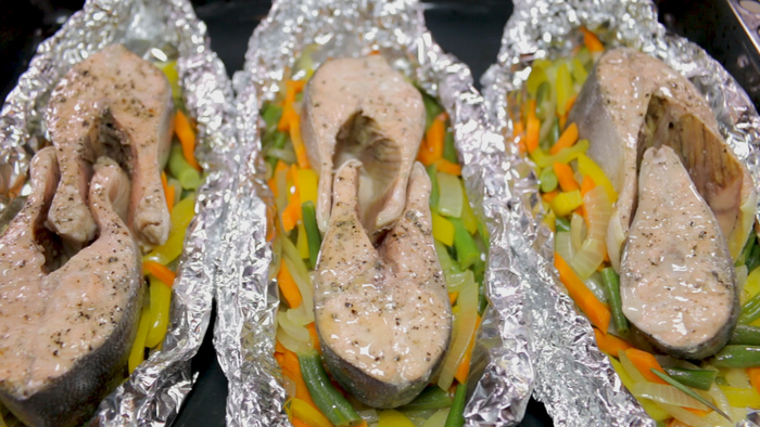 Горбуша - это один из самых распространённых и быстро растущих представителей семейства лососёвых. Это делает данную рыбу достаточно доступной к приобретению, однако обратной стороной медали является то, что для того, чтобы приготовить её действительно вкусно - необходимо иметь проверенный рецепт. В этом рецепте я покажу как приготовить горбушу кусочками в фольге. Делать мы это будем на подушке из овощей. Такая горбуша получится сочная и вкусная. Приятным бонусом станет, то, что одновременно с рыбой вы приготовите гарнир из овощей. Приятного аппетита!