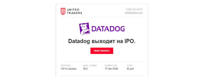 Я копнул глубже и остановился на IPO американских компаний. В Америке большое количество технологических гигантов. Биотехнологии, космос, IT, вот это все. Одна из компаний в России, которая дает доступ к IPO, – это United Traders. Заморочек нет: вносишь деньги на счет прямо со своей карты. Не сложнее, чем заказать еду из приложения! Еще у них заманчивое предложение: порог входа для IPO от 50$. Как инвестиции такая сумма, конечно, не прокатит – получите вы 20-25% прибыли, куда их. Но для тестовой закупки, если сомневаетесь и хотите проверить платформу, – самое то.