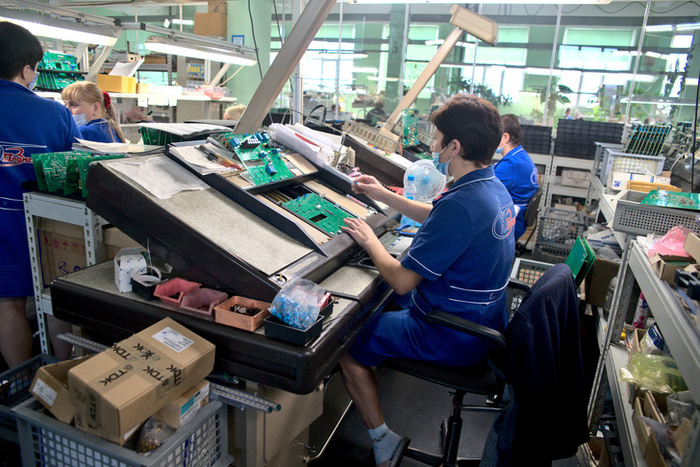 Интересно, что таким он остаётся и сегодня. Впрочем, от старого советского завода осталось немного: с тех пор на территории построено много новых цехов. Большой парк современного оборудования позволяет производить практически всё. Тут установлены и металлообрабатывающие станки, станки лазерной резки, листогибочное, прессовое оборудование. Но завод сохранил и производство электроники, причём не просто сохранил — сегодня это мощное, гибкое и очень современное производство электронных устройств любой сложности.