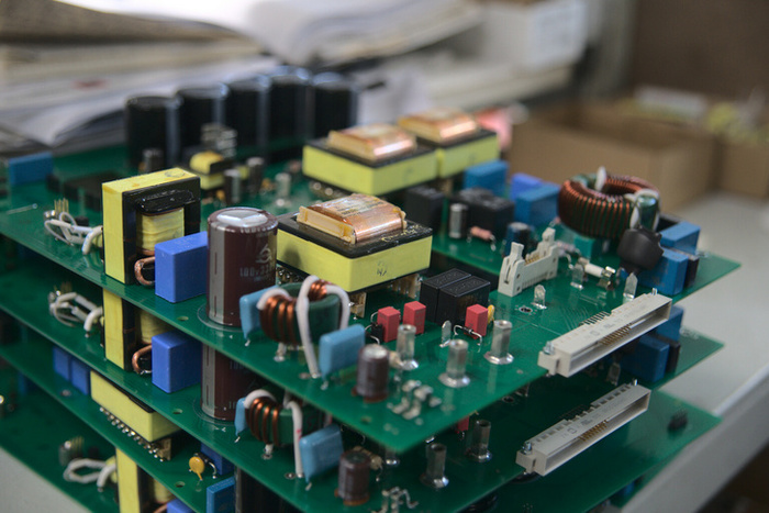 Это был цех поверхностного (SMD) монтажа, но, конечно, тут есть и линия навесного монтажа. Она нужна для установки тех элементов, которые устанавливаются на плату в отверстия. Обычно это мощные компоненты: трансформаторы, мощные резисторы, конденсаторы большой ёмкости.