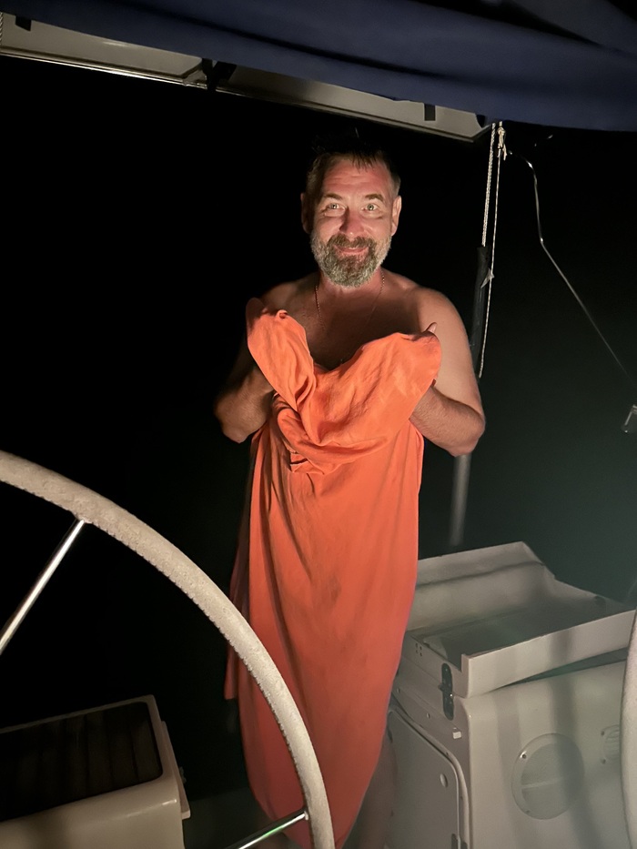 Ужин в кокпите под звёздами, с вином и разговорами.