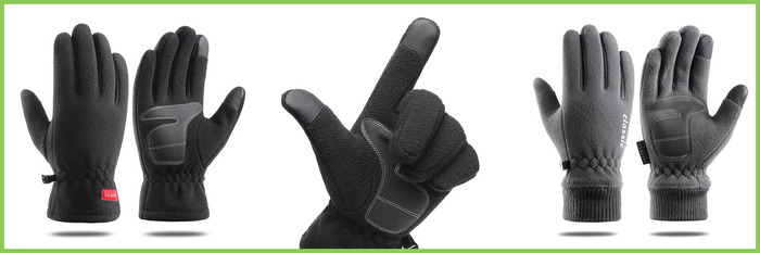 Недорогие мужские двойные флисовые перчатки на мягкую, в российском понимании, зиму. На ладонях специальные вставки из крепкого материала, в перчатках можно пользоваться смартфоном. Есть два цвета, в каждом из которых два фасона – с вязаной манжетой и без нее. Более полутора тысяч отзывов от покупателей, средний балл 4,8 из 5. Огромное множество живых фотографий.