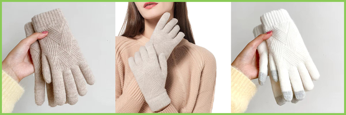 Вязаные бюджетные синтетические перчатки для девушек. В отзывах покупатели пишут, что теплые, качественные, но на маленькую руку, поэтому имейте это ввиду. Кстати, отзывов этих 86 штук, со средним баллом 4,8 из 5. Есть в девяти цветах, работают с сенсором.
