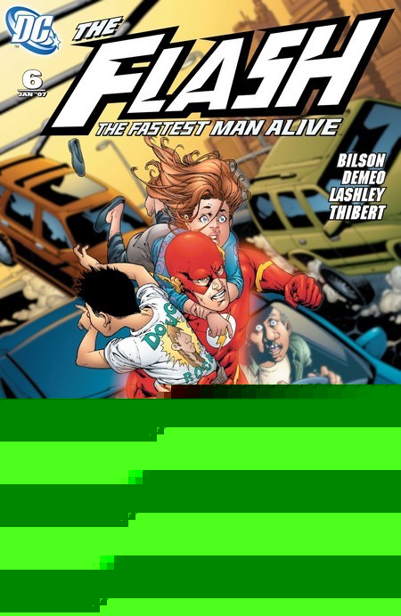Так что сегодняшний забег начнётся с комикса The Flash: The Fastest Man Alive #2 за сентябрь 2006 года, с историей от Дэнни Билсона и Пола ДеМяу, то есть, ДеМео, и рисунком от Кена Лэшли. Барт Аллен просыпается от не самого приятного сна, в котором видел свои прошлые приключения (когда-то он был Импульсом. потом Кид Флэшем, сейчас же его контроль над скоростью сбоит, потому что сам Спидфорс был «сломан»). А сосед Барта по комнате, Гриффин Грей, который в прошлом выпуске попал в ДТП и которого не смог спасти Барт, просыпается в больнице, мучаясь от боли, и начинает излучать какую-то странную энергию. Барт же признаётся Джею Гаррику, первому Флэшу (и своему приёмному дедушке), что всё ещё обладает суперскоростью, но не может её контролировать. Гаррик настаивает, что Барт должен взять скорость под контроль, но сам Барт направляется в лабораторию S.T.A.R., стремясь от скорости избавиться и жить, как нормальный человек.