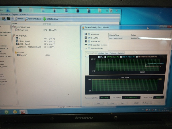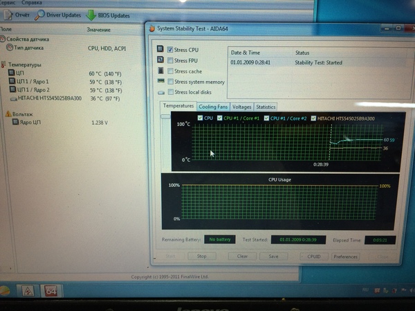 Сразу включил ноутбук запустил AIDA (т.е. не мучил даже сначала)