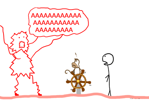 Как правило, наглая Обезьянка в панике бежит прочь от Монстра. Как еще объяснить, что тот самый человек, который две недели подряд не может написать первую фразу статьи, вдруг обретает суперспособность не спать всю ночь, героически забыть про усталость и написать 8 страниц? Зачем иначе фантастически ленивому человеку браться за скрупулезную нудную работу? Только под крики Панического Монстра.