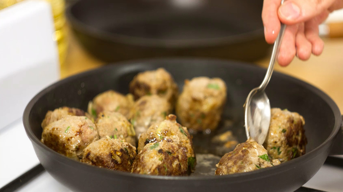 - Возвращаем тефтели в сковороду и готовим 5-7 минут