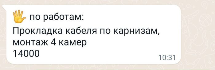И это просто работы по прокладке кабеля и закрепление камер. Сам кабель, камеры и всё оборудование - это отдельно.