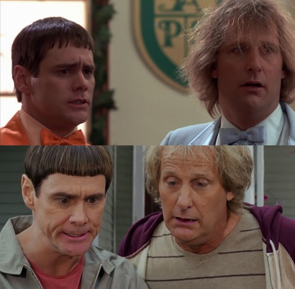 Ллойд Кристмас (Джим Керри) и Гарри Данн (Джефф Дэниэлс).