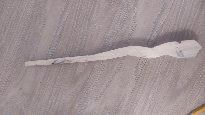 В итоге палочку отжал себе быстрее младший, чем старшая дочурка. Дело стало пахнуть черной магией в воздухе. Дело шло к битве за палочку. Под угрозой, что все отправятся в угол Азкабана, удалось временно успокоить обстановку. Выбора не было - надо делать еще одну палочку. Всё те же инструменты и пошло дело опять.