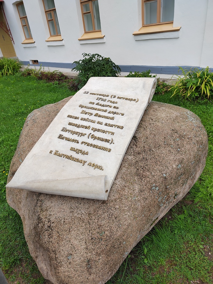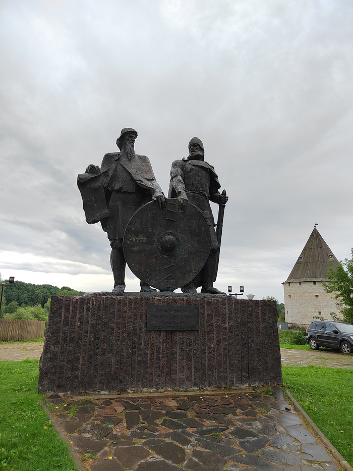 Собственно рядом с крепостью и расположен памятник Вещему Олегу и Рюрику. А также установлена памятная доска походу Петра 1.