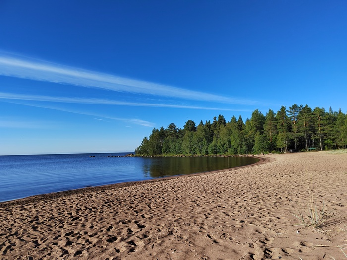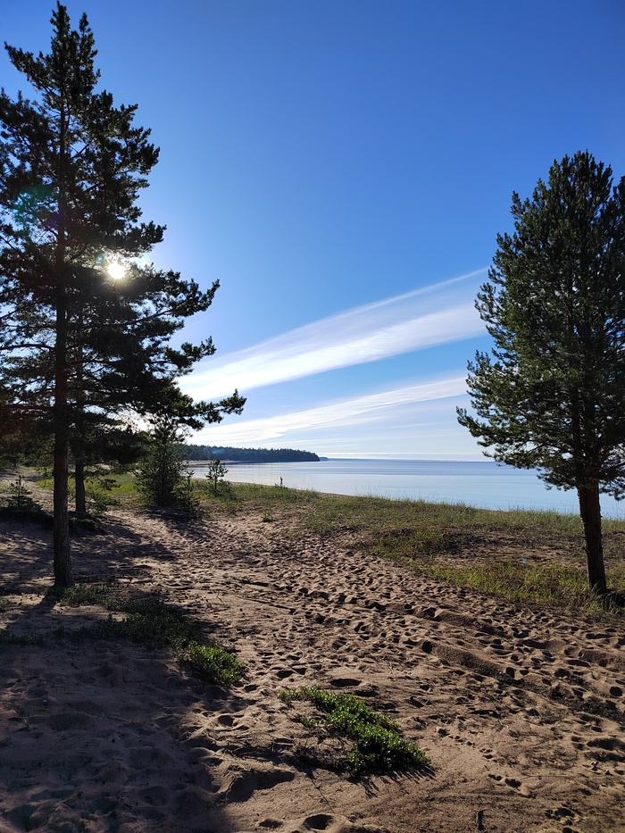 Ночевать остановились в лесочке за Видлицей, где были очень красивые виды, сосны, песок, чистая водичка Ладожского озера. Правда у нас случился небольшой казус, машина застряла в песке, тк мы хотели подобраться поближе к пляжу на ней. Но добрые люди помогли вытолкать машину.