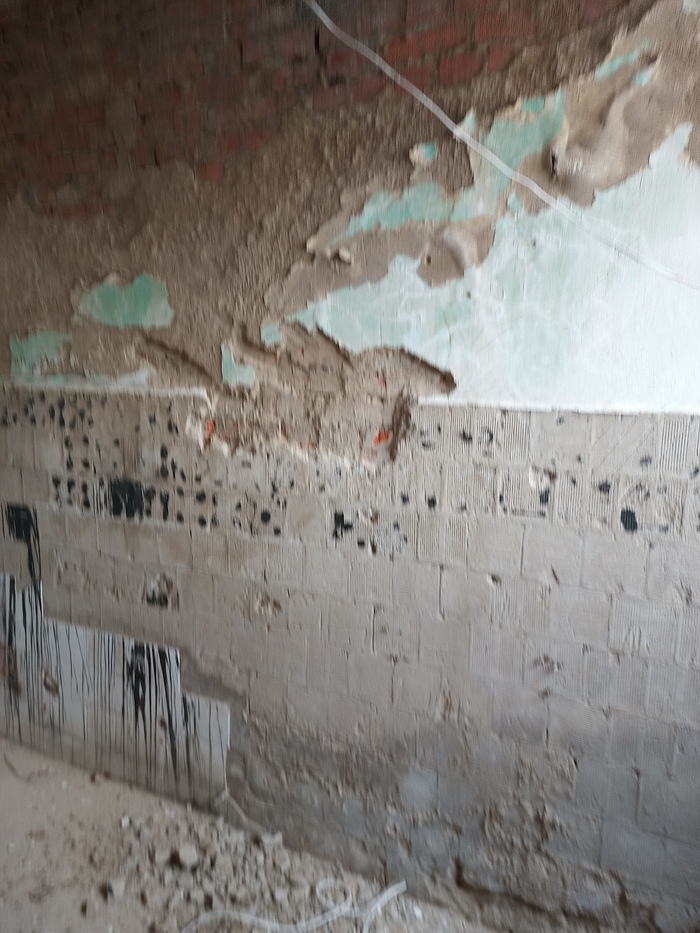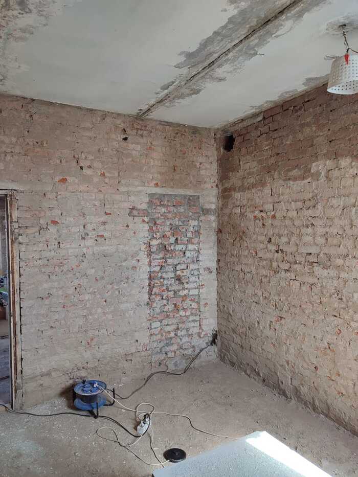 Короче посмотрела и сказала мужу надо хотя бы снять штукатурку. Муж дал мне перфоратор и сказал, ну раз тебе надо снимай. Честно сказать мне раньше не доводилось ничего разрушать, но мне понравилось! Правда до того момента пока я, не дошла до плитки. Под плиткой оказалось 2 бывших дверных проёма, их заложили и сверху замазали цементом. Который нихрена не отрывался. Одну биту я сломала таки. И получилось у нас вот это
