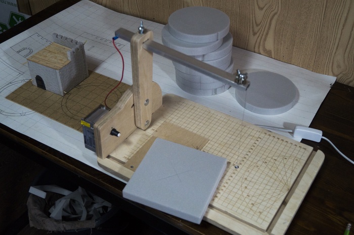 Итак, поговорим сегодня о станке для резки пенополистирола (который, между прочим, можно приобрести себе в личное пользование на нашей площадке). Собственно, резать всякий пенопласт можно и ножом. И существует масса вариантов постройки одних и тех же форм без применения спец. оборудования. Например, ту же круглую башню можно сделать из обклеенной фактурой банки "Принглс" или вообще нарезать отдельных кирпичей и сложить из них крепость. Но как показывает практика и опыт, для нарезки стен нужной толщины без терморезака обойтись прям непросто. Особенно если стена круглая. А еще более особенно, если она коническая.