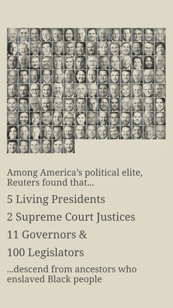 Сюда же исследование, что в правящих кругах США процент потомков тех, кто имел рабов намного выше, и почти все президенты за последнее время, кроме Трампа-потомки рабовладельцев. Рабовладение было привилегий и довольно небольшое количество американцев были рабовлалельцами