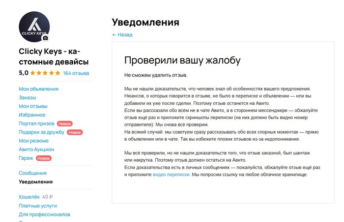 Привет, ребят! Уже наверное написано 100500 постов по теме поиска решения возникших проблем на Авито через их поддержку. Сам часто сталкиваюсь с надобностью решения спорных вопросов через тикеты и, собственно, невозможностью грамотно их решить, но последняя ситуация всё же вынудила написать данный постец... В общем, речь пойдёт о попытке подать апелляцию на отзыв обидчивого (неконструктивно обидчивого) индивида-покупателя.