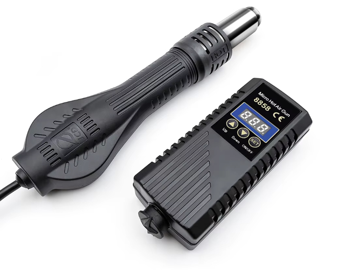 Нагревает и сушит различные материалы. Работает от электрической сети. Оснащена регулировкой температуры и воздушного потока. Позволяет выполнять различные виды работ, такие как снятие краски, термоусадка и пайка.