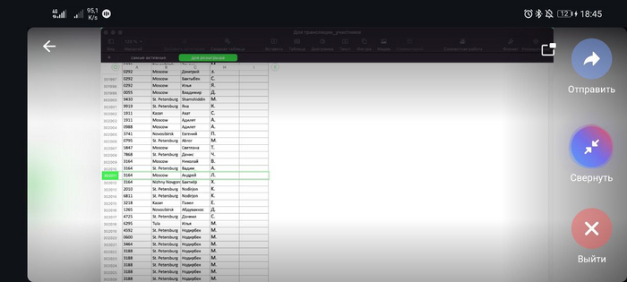 Далее, ведущий открыл эксельник, и начал долго и мучительно листать весь лист до номера 302011. Видимо переход на строку у них не работает, что поделать