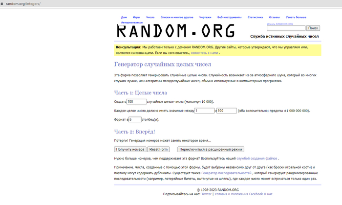 Обратите внимание, как выглядит сайт https://www.random.org/integers/